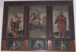 O retábulo é constituído por três painéis e predela. No painel central, figura Santo Tiago, o Maior, o orago da igreja e nos painéis laterais estão representados, no lado esquerdo, Santo Pedro e, no direito, Santo Paulo. Na predela, estão representados, da esquerda para a direita, Santa Apolónia, Santo António e Santa Luzia.